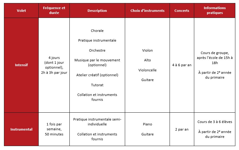 En 2013, Partageons l’espoir développe, en plus des cours hebdomadaires déjà existants, un volet intensif de musique inspiré de la philosophie El sistema. Au plus proche de la réalité sociale et économique des jeunes du quartier et plus largement du Sud-Ouest de Montréal, le programme se développe en partenariat avec les écoles de proximité afin de toucher le plus grand nombre d’enfants et de familles.